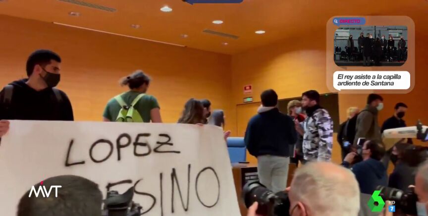 Un grupo de jóvenes ha irrumpido en el acto al grito de "fuera fascistas de la universidad" y portando una pancarta con las palabras "López asesino". Isabel Díaz Ayuso y Begoña Villacís han condenado lo ocurrido.
