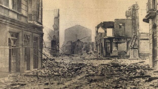 30 toneladas de bombas y más del 80% de los edificios destruidos: este fue el resultado del ataque aéreo de aquel 26 de abril. A lo mejor los datos no sorprenden, se sienten ajenos. Calles, establecimientos comerciales, parques, jardines, viviendas todos ellos reducidos a escombros; una ciudad, que por aquel entonces contaba con más de 5.500 habitantes, destrozada. En aquel momento, el Ejército alemán calificó al ataque sobre Gernika como un "ensayo"; un acto que se repetiría sistemáticamente durante la II Guerra Mundial.