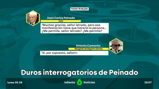 En unos audios a los que ha tenido acceso laSexta, Camacho afirmaba que Begoña Gómez se acogía a su derecho a no declarar. Ante esto, el juez Peinado, tras dar las gracias al "señor letrado", le comenta que esa manifestación tiene que hacerla ella.