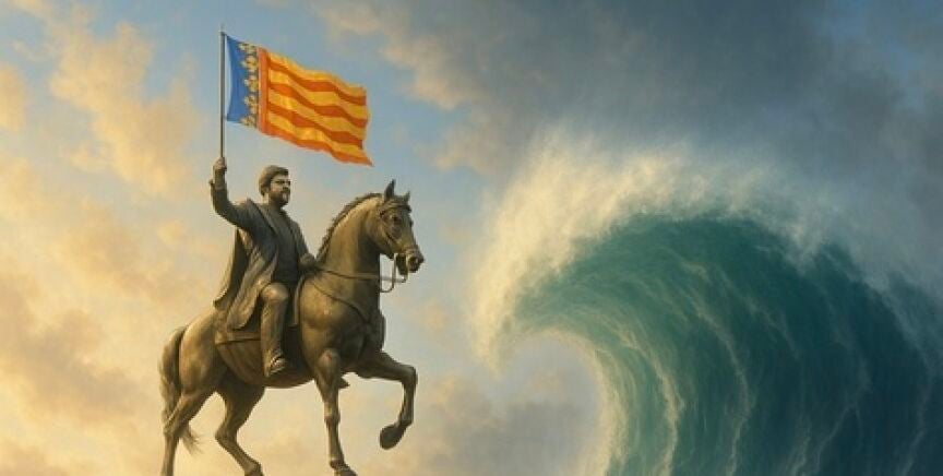Así, la figura de Mazón a caballo, portando una Senyera y como "protector" de todos los valencianosse ha colado en los presupuestos participativos de Valencia. "Este proyecto propone la construcción de un muro de contención robusto y estético en una zona de alto riesgo de riadas, con el objetivo de proteger a la población, las infraestructuras y los cultivos cercanos", escribe el autor, que acompaña su propuesta con una imagen de cómo sería la obra escultórica, que se colocaría sobre ese mencionado muro.