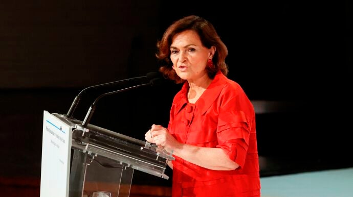 La vicepresidenta primera, Carmen Calvo, asegura que los indultos a los presos independentistas están cerca y "llegarán pronto a la mesa del Consejo del Ministros" y al PP le critica que su única alternativa sea "volver a la plaza de Colón, una y otra vez, a decir a Cataluña que el resto de España está en su contra".