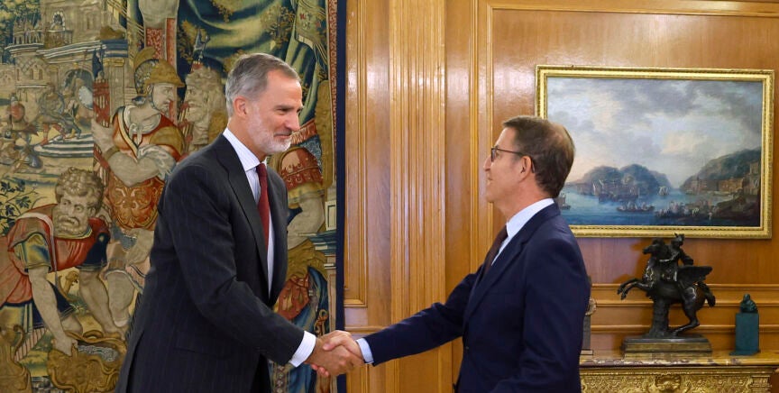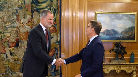 La letra pequeña Fuentes de Zarzuela indican a laSexta que no comentan "conversaciones privadas del rey", una costumbre que ha roto Feijóo al asegurar que Felipe VI le había dicho que comprendía su ausencia en el acto.