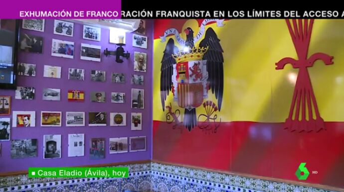 Sin embargo,la exhumación ha tenido otra caraen el bar 'Casa Eladio', en Ávila, decorado con temática franquista. Allí, los asistentes han guardado silencio excepto para expresar sus críticas al Gobierno: "Es una revancha lo que están haciendo con él, porque él no se mete con nadie después de 44 años".