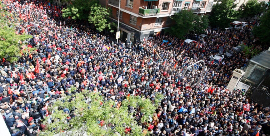 De hecho, se han desplazado de madrugada en autobuses movilizados por las federaciones autonómicas del PSOE, con el objetivo de buscar una movilización masiva sin precedentes junto a la sede nacional. Según los organizadores, 20.000 personas se han concentrado a pesar de la lluvia y el frío, 12.500, según la Delegación del Gobierno.