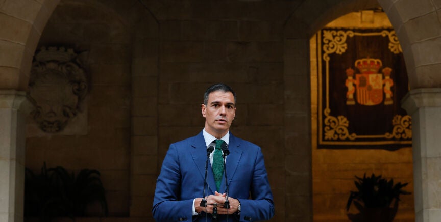 El presidente del Gobierno ha evitado hablar de su declaración en la Moncloa ante el juez Peinado. "Después de un despacho con el rey, no puedo ni debo referirme a ello", ha asegurado. Por otro lado, ha celebrado el preacuerdo con ERC: "Es extraordinario".