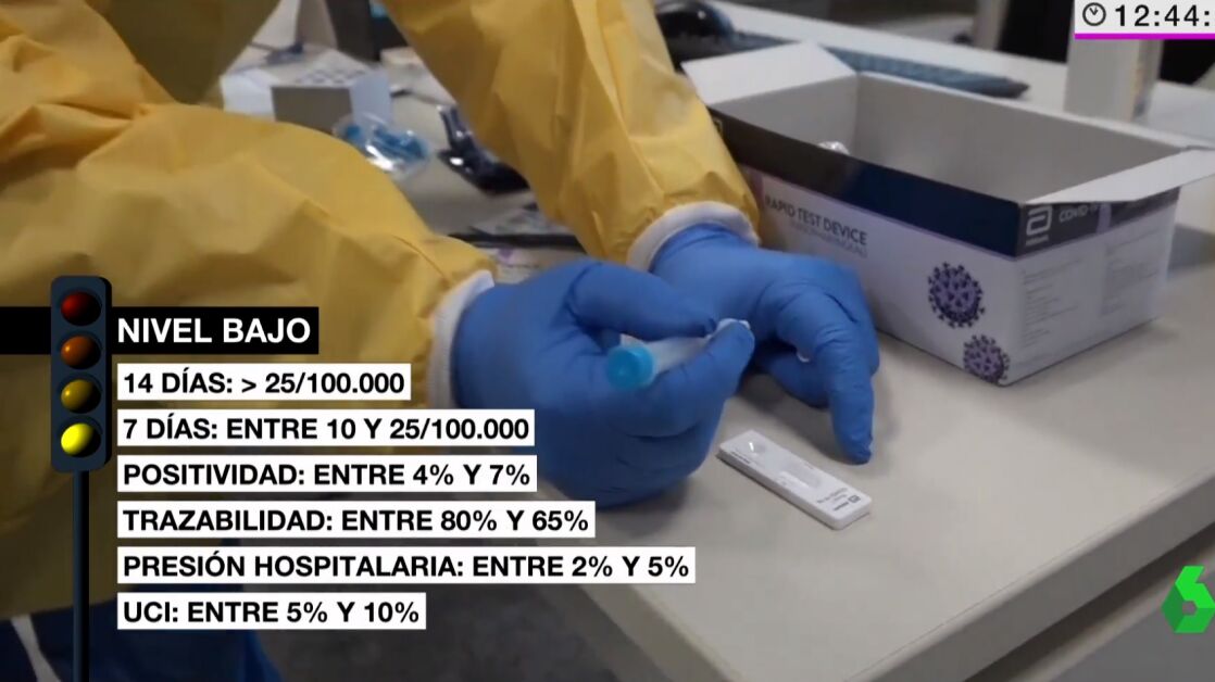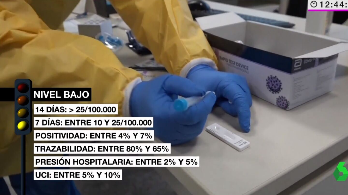 A destacar: el número de casos por cada 100.000 habitantes, la incidencia en personas de más de 65 años, el porcentaje de positivos sobre los test realizados y el porcentaje de casos en los que se conoce el origen de la infección. A continuación, describimos cómo funciona cada nivel y cuándo se activa: