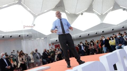 "No creemos en esa mierda de España de unos contra otros. No creemos en la España del fascismo y del antifascismo. No creemos en la España del comunismo y del anticomunismo. Creemos en la España del abrazo colectivo", ha afirmado Francisco Igea, acompañado de Inés Arrimadas.