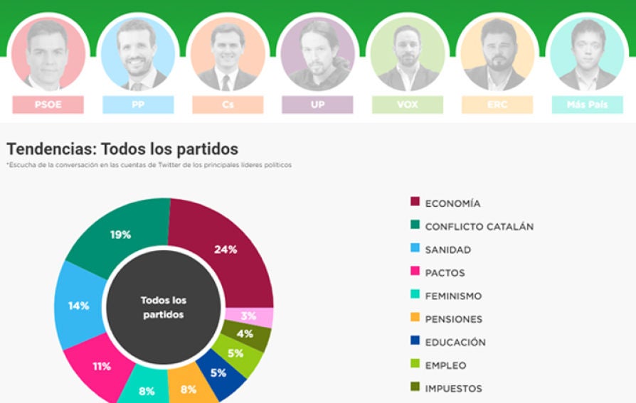 Cataluña, feminismo, empleo... los temas sobre los que los candidatos dirigen la conversación en Twitter en la jornada del 10N