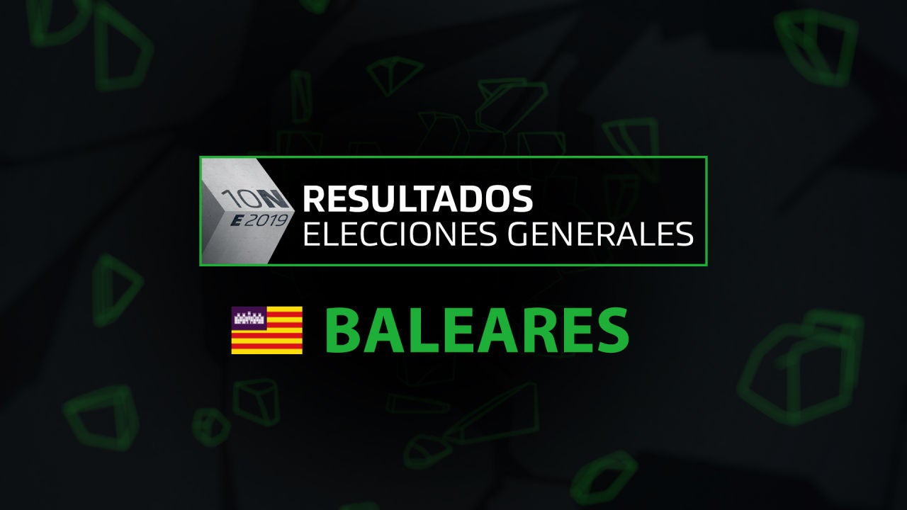 Conoce al detalle los resultados de las elecciones generales del 10 de noviembre de 2019 en Baleares. Número de votos, participación, porcentajes de voto, diputados y senadores al Congreso y Senado. Todos los datos electorales de los partidos políticos en Baleares.