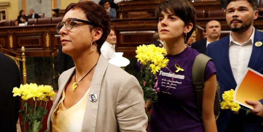 Los diputados de Esquerrahan entrado en el hemiciclo portando flores amarillas como símbolo de solidaridad con los políticos presos por el 'procés' independentista.