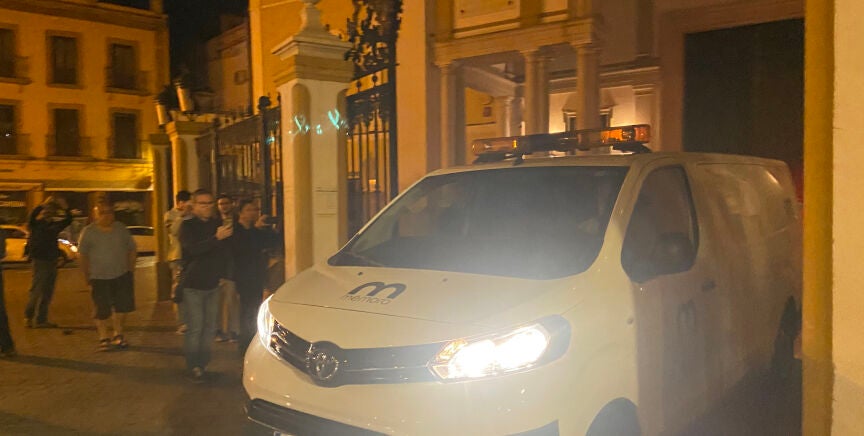 Hubo que esperar más de dos horas para que llegara una furgoneta fúnebre de color blanco y a las 2:20 horas del jueves las puertas se volvieron a abrir y salieron en esa furgoneta los restos del general Queipo de Llano, enterrado en la Macarena hace 71 años, y su cónyuge Genoveva Martí.