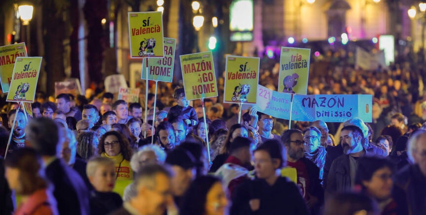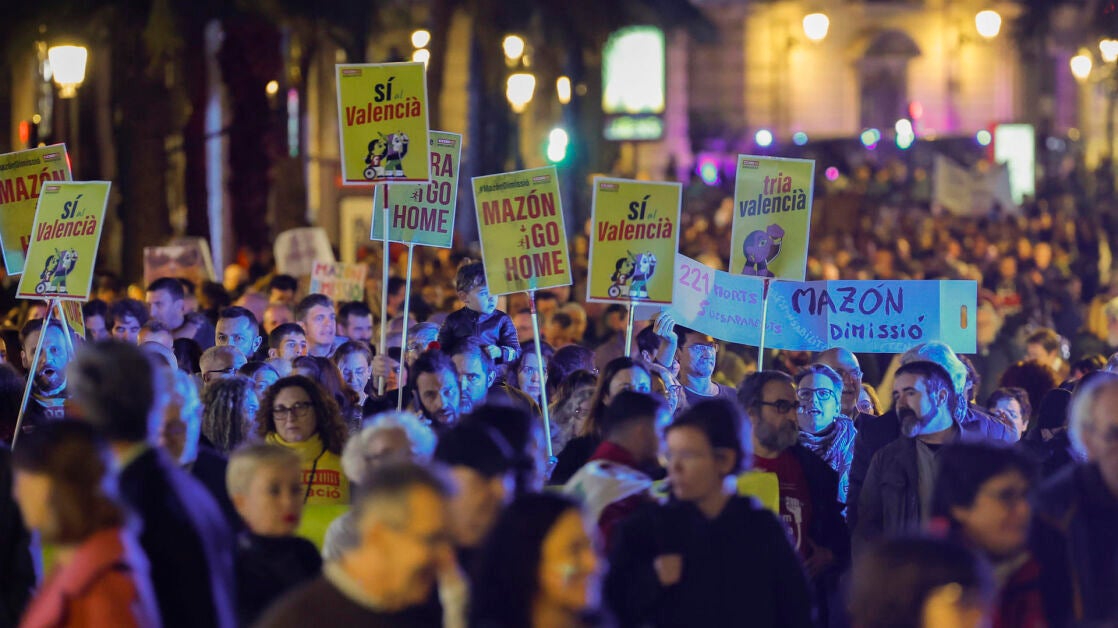 La protesta ha sido convocada por la Plataforma per l'Ensenyament Públic y bajo el lema 'Mazón y Rovira, dimisión'. En ella han participado organizaciones de padres y madres de alumnos, así como sindicatos de docentes y estudiantes. Todos ellos han partido a las seis de la tarde de la plaza de San Agustín y está previsto que finalice en la plaza de la Virgen, donde se ha leído un manifiesta y se ha guardado un minuto de silencio por las víctimas.
