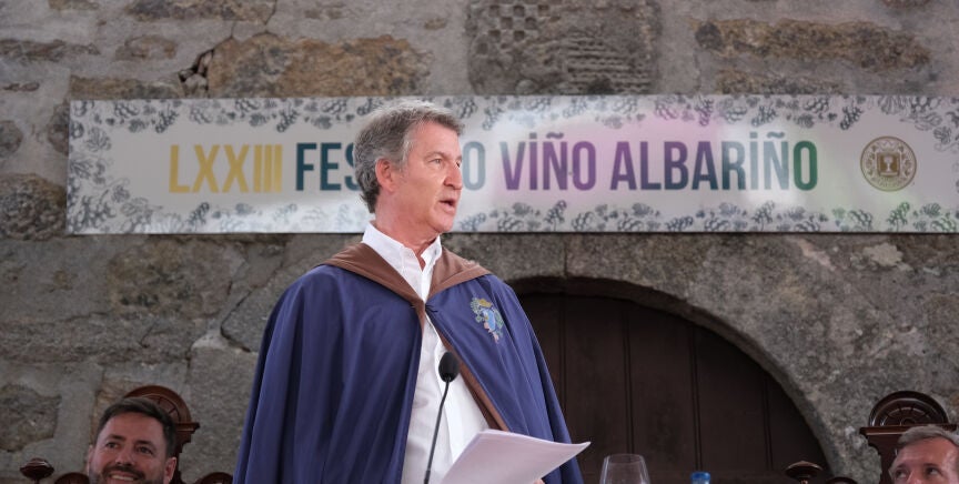 El presidente del PP también ha aprovechado para cargar contra el Ejecutivo de Pedro Sánchez ironizando con las fiestas de Cambados: "En esta fiesta, las coaliciones son muy sólidas, casi todo el mundo sabe el presupuesto que trae y no prorroga el presupuesto del ejercicio anterior".