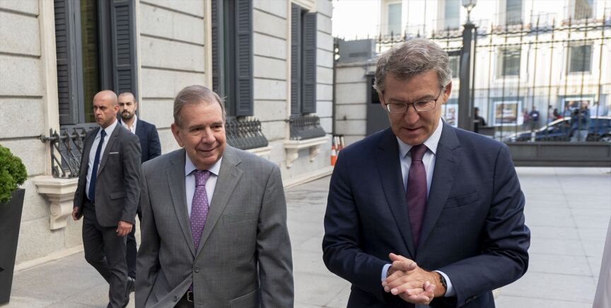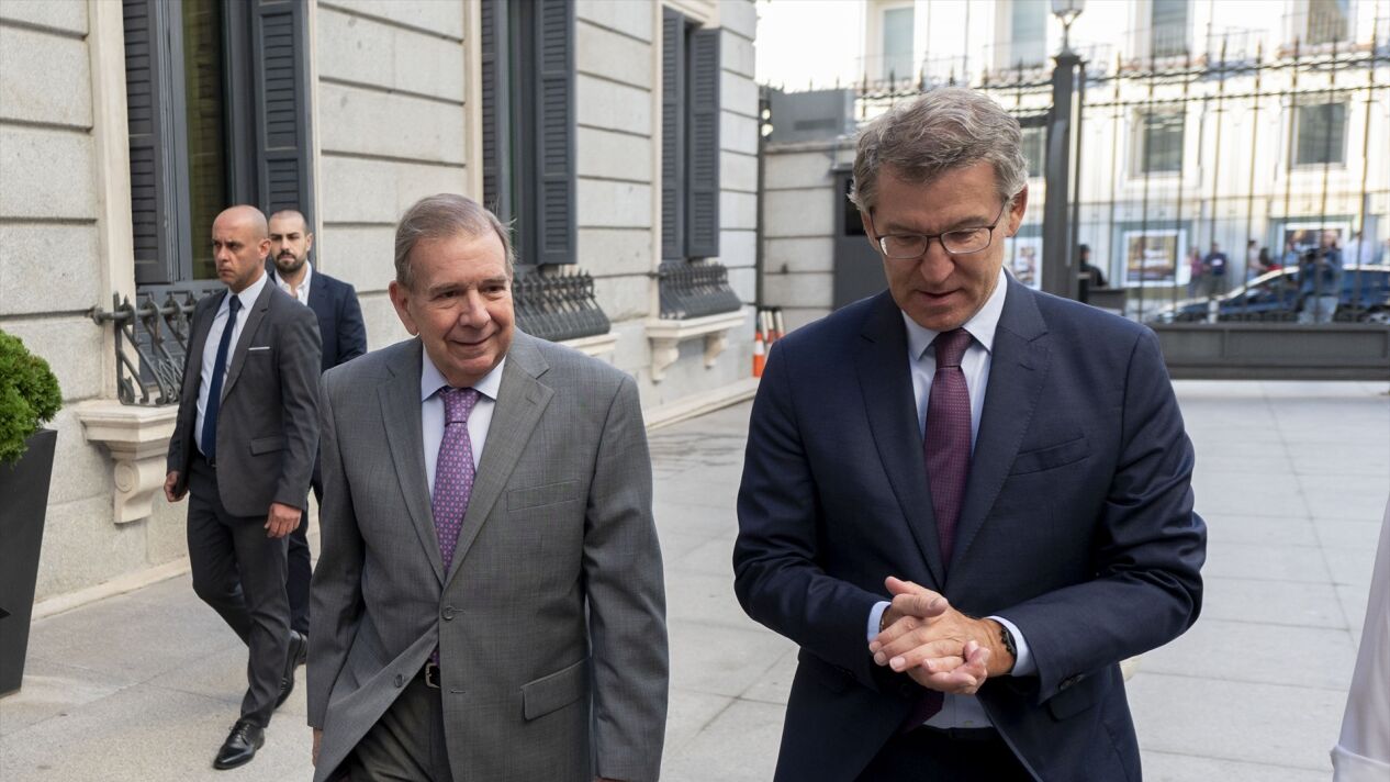El líder del Partido Popular (PP), Alberto Núñez Feijóo, se reúne este martes en el Congreso de los Diputados con el opositor venezolano Edmundo González Urrutia. Un encuentro que tiene lugar una semana después de que la Cámara Baja reconociera al antichavista como presidente electo de Venezuela, en la víspera de que haga lo propio el Senado y que coincide con el debate de una resolución similar en el Parlamento Europeo.
