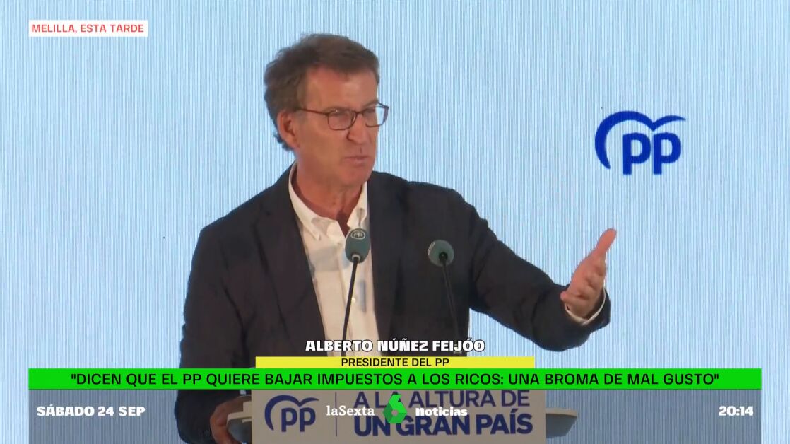 Desde Melilla, el líder del PP ha asegurado que su partido podría recaudar más bajando impuestos: "A Sánchez le preocupa que haya ricos en nuestro país, a mi me preocupa que los españoles sean cada día más pobres con la política del Gobierno", comenta Feijóo, que también ha calificado de "broma de mal gusto" que se diga que "el PP le quiere bajar los impuestos a los ricos".