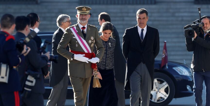 Al rey se le acumulan los frentes en la primera Pascua Militar del Gobierno de coalición, con un vicepresidente y cuatro ministros abiertamente republicanos y críticos con la Corona.