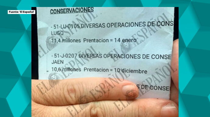 Una foto medio tapada por unas manos, mecanografiada y con faltas de ortografía. Es la presunta prueba que mostró Aldama ante el juez, publicada por 'El Español', y con la que él dice demostrar el cobro de comisiones a través de licitaciones de obras. Volviendo a la foto, Víctor de Aldama dice que la mano es de Koldo García y que se trata de la licitación de dos carreteras y es anterior a 2019.