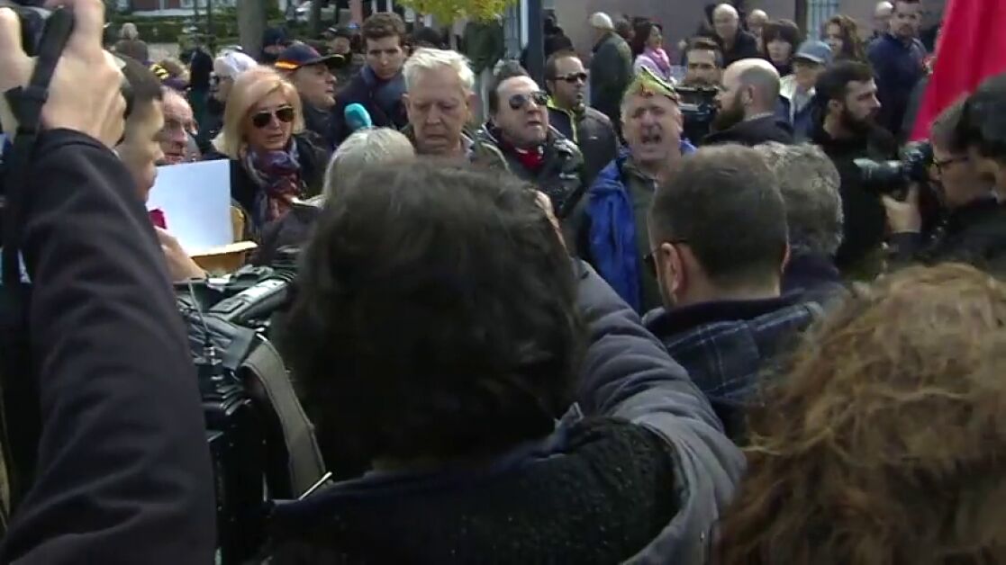 Un grupo de franquistas concentrados en los aledaños del cementerio de Mingorrubio, lugar donde será trasladado el cadáver de Francisco Franco tras ser exhumado del Valle de los Caídos, ha lanzado insultos homófobos y amenazas al Gobierno del PSOE y a laSexta.