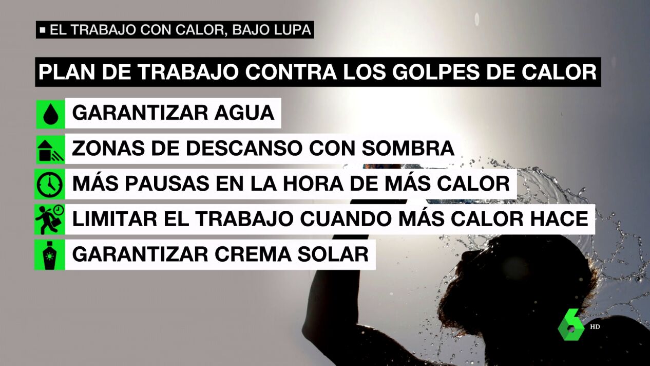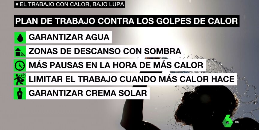 Las medidas que plantea este nuevo protocolo van desde garantizar agua a los trabajadores, a habilitar zonas de descanso a la sombra y promover pausas durante las horas de más calor. También limita el trabajo cuando más calor hace y garantiza crema solar para evitar lesiones cutáneas o ropa de trabajo.