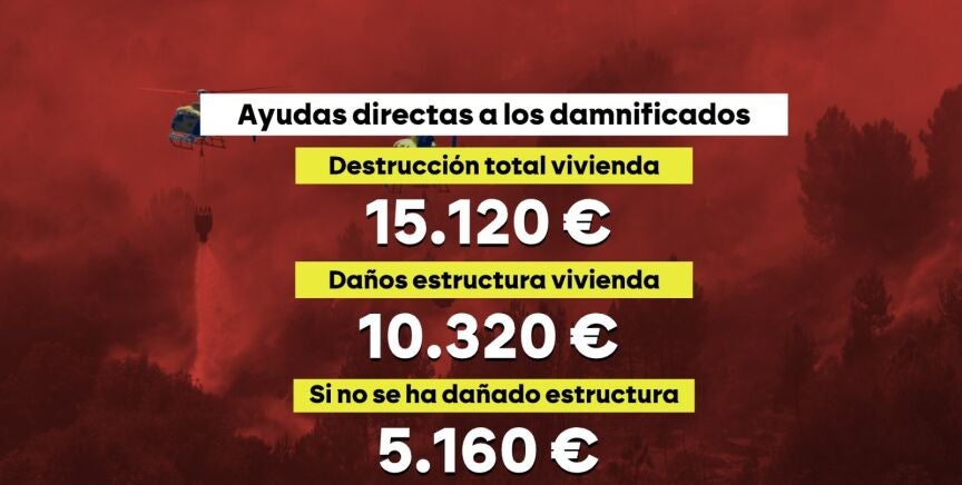 Ayudas directas y beneficios fiscales: así son las medidas aprobadas por el Gobierno a los afectados de los incendios