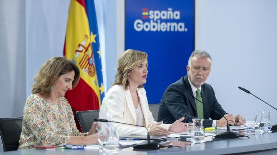 "Por lo tanto, aquí le exigimos también al Partido Popular responsabilidad y altura de miras y, sobre todo, una posición común porque vemos un discurso, el discurso que realizan en la comunidad autónoma de Canarias donde están gobernando las ciudades autónomas de Ceuta y Melilla y otro muy distinto en el resto de las comunidades autónomas", ha asegurado la portavoz del Gobierno y ministra de Educación, Formación Profesional y Deportes, Pilar Alegría, en rueda de prensa posterior al Consejo de Ministros sobre la posición de los 'populares' a la propuesta del Gobierno de la reforma de la Ley de Extranjería para el reparto de menores migrantes.