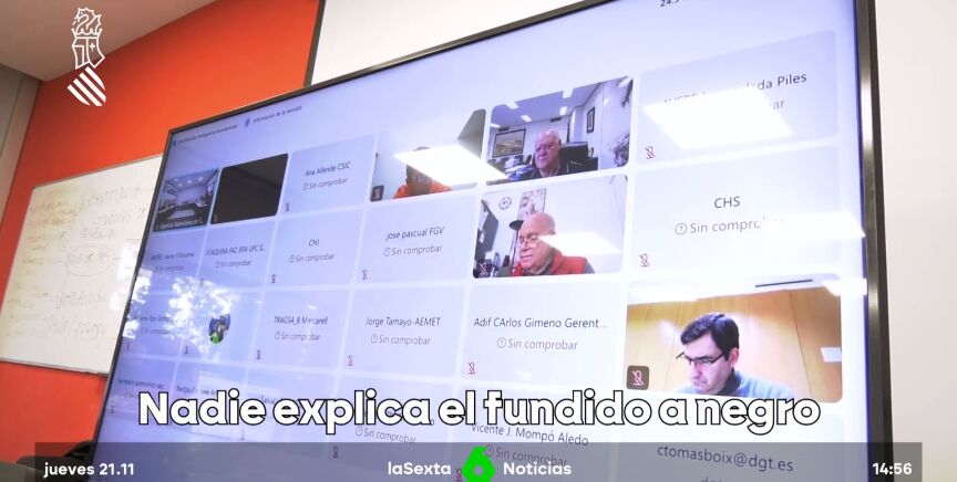 El Govern de Carlos Mazón no puede explicar por qué hubo un 'apagón' de más de una hora en la reunión del Centro de Coordinación Operativa Integrada (CECOPI) el 29 de octubre, el día de la catastrófica DANA. Este jueves ha sido imposible que alguien del equipo del president de la Generalitat Valenciana diera a laSexta el motivo por el que se "se fue a negro" la pantalla entre las 18.00 horas y las 19.00 horas, en unas horas clave porque fue cuando se produjo la gran crecida del barranco del Poyo.