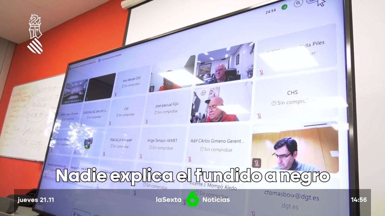 Teresa Ribera desveló que durante la reunión del 29 de octubre la pantalla "se fue a negro" de 18:00 a 19:00 horas, pero desde la Generalitat no dan explicaciones de por qué hubo este parón. Según ha podido saber laSexta, no fue un error técnico.