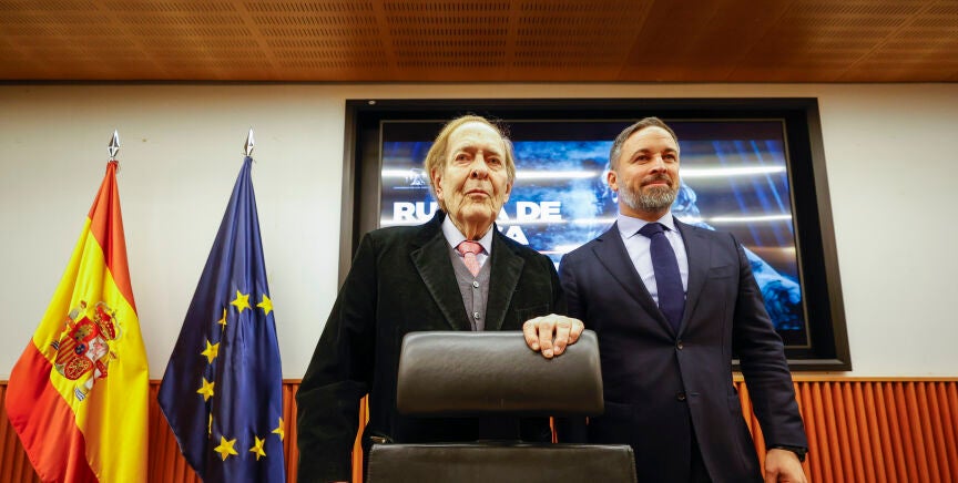 Abascal presenta a su candidato, al economista Ramón Tamames, que intervendrá posteriormente, por cuanto tiempo quiera, para defender un adelanto electoral y un cambio de Gobierno.
