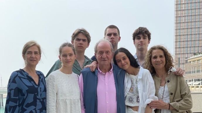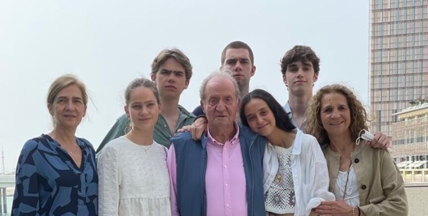 En la imagen, vemos cómo le rodean sus nietos, con Victoria Federica incluso apoyándose en el hombro de su abuelo en un gesto cariñoso. No falta ninguno de los hijos de doña Cristina, con Irene en primer plano, y detrás sus tres hermanos.