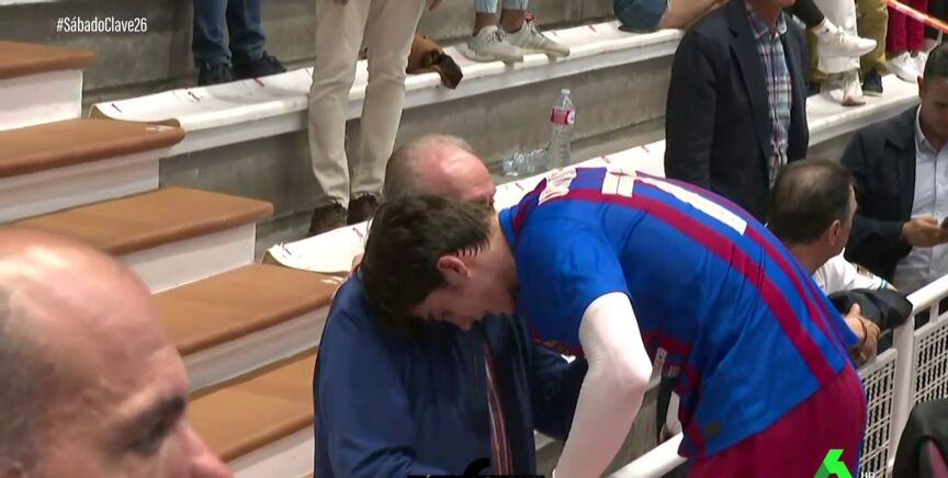 Tras unos instantes de espera, ante la atenta mirada de los medios, el nieto se ha acercado a su abuelo y se han dado un cariñoso abrazo, aplaudido por muchos aficionados, han charlado durante cerca de un minuto y se han despedido después de que el jugador besase la mano del rey emérito.