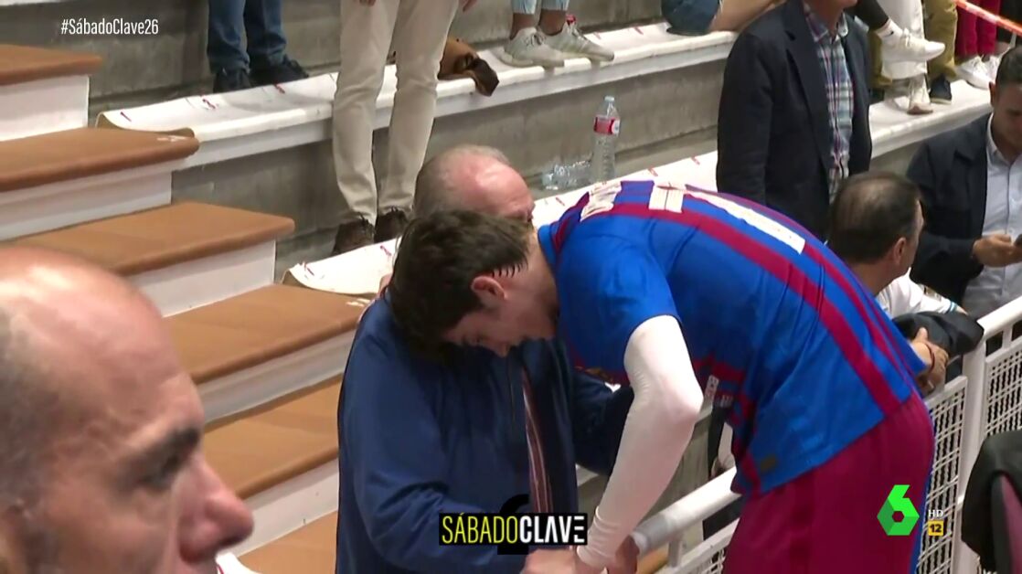 El instante en el que el rey emérito se funde en un abrazo su nieto Pablo Urdangarin tras un partido de balonmano