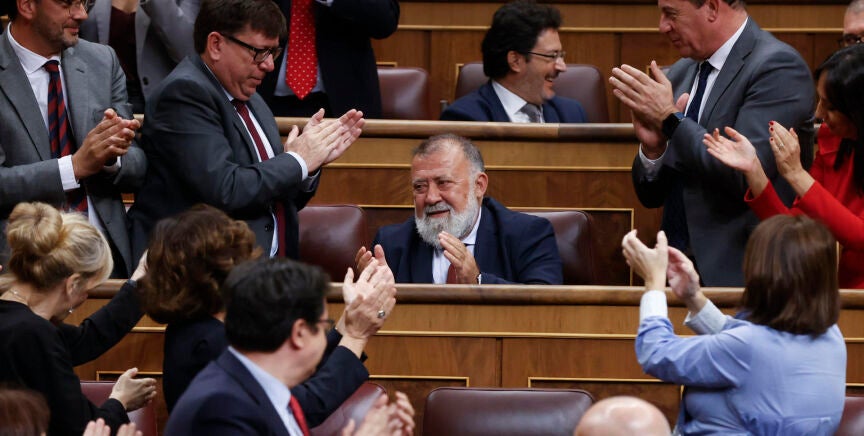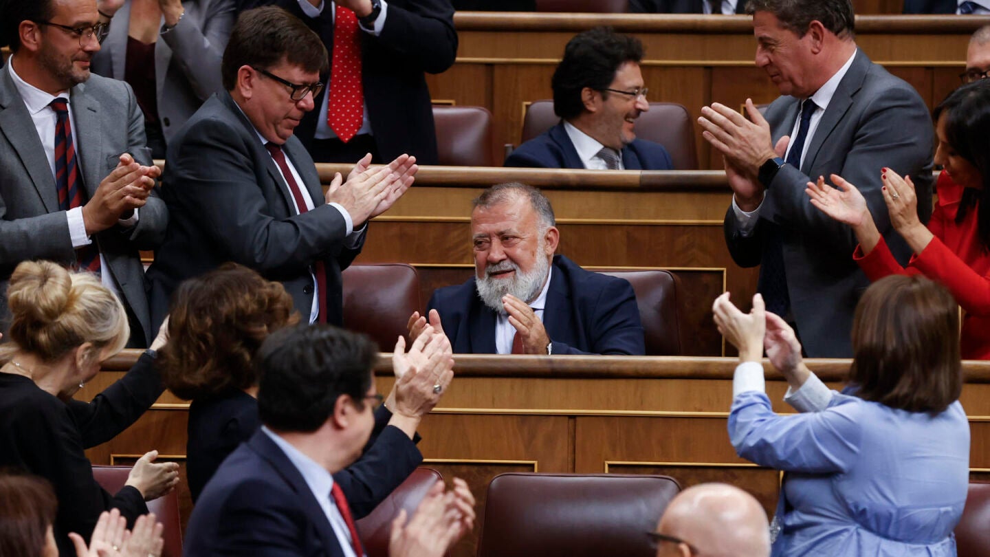 "A todos, ánimo y fuerza. No nos van a callar", ha defendido López, poniendo en pie a la bancada socialista, para ovacionar al propio Herminio.