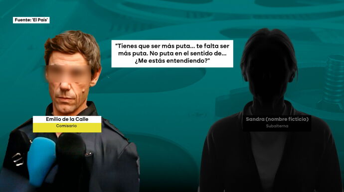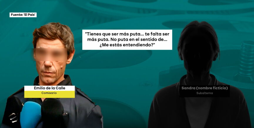 El diario 'El País' ha publicado este viernes grabaciones de la investigación al comisario Emilio de la Calle, investigado por la Audiencia Nacional por presuntos delitos de acoso laboral y sexual contra una subordinada. Entre las frases que escuchamos en esas grabaciones, hay auténticas barbaridades como: "Te dejo como un trozo de carne, te reviento, ten cuidado", "no vuelvas a tocarme los cojones", "Me quedan ocho meses para putearte y eso se me da muy bien" o "¿Qué hago, te pego? A ver si con el ojo morado".