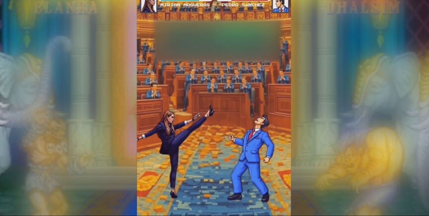 Como si de un combate de 'Mortal Kombat' se tratase, vemos un Congreso de los Diputados convertido en ring de peleas. A un lado del ring, Miriam Nogueras; al otro, Pedro Sánchez. Ambos combaten con las frases que se han ido dirigiendo en los últimos meses, hasta que Nogueras consigue dejar KO al presidente del Gobierno.