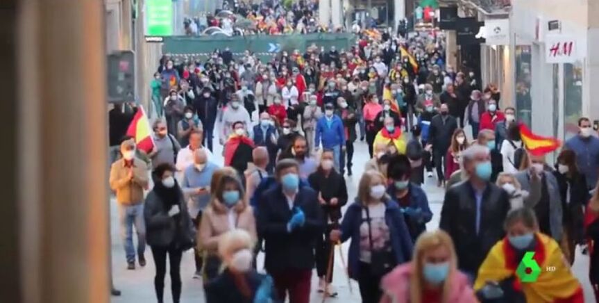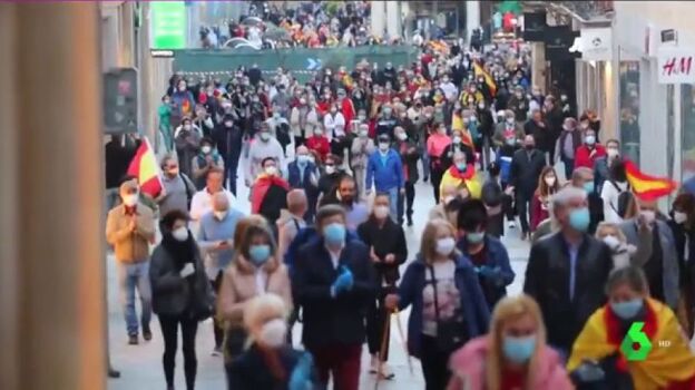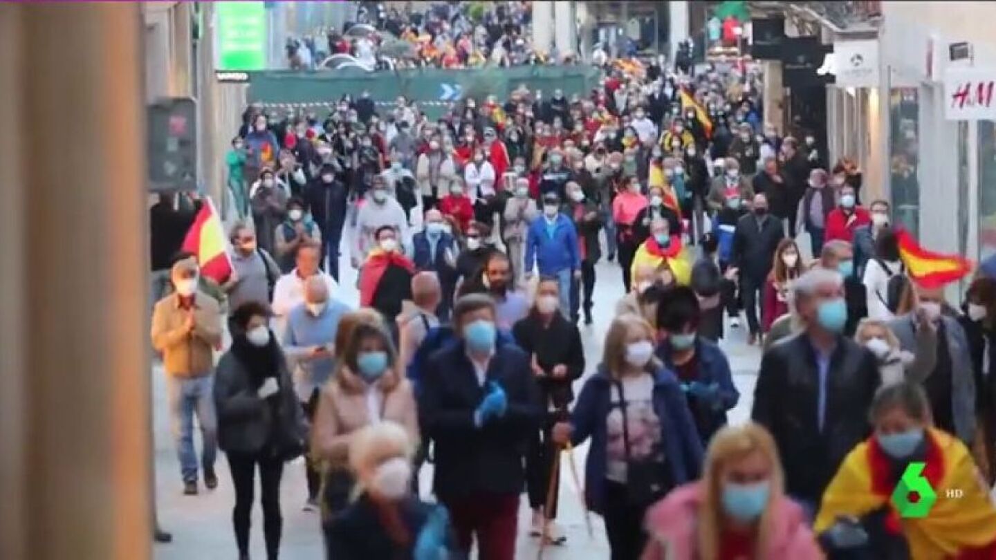 Este domingo, numerosas personas han ocupado las calles de Salamanca para denunciar la forma de proceder del Gobierno para frenar esta crisis sanitaria. También en Logroño o Zaragoza, decenas de personas han protestado cubiertos con la bandera de España, pidiendo la dimisión del presidente del Gobierno.