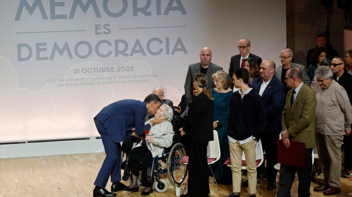 Es 31 de octubre, día de recuerdo y homenaje a todas las víctimas del golpe militar, la Guerra y la Dictadura franquista. Así lo estableció la Ley de Memoria Democrática de 2022 y este viernes, por cuarto año consecutivo, Pedro Sánchez ha presidido este viernes un acto donde se ha rendido homenaje a una veintena de víctimas y donde el presidente del Gobierno ha incidido en que la democracia "no cayó del cielo, sino que fue el triunfo de la gente de a pie que luchó por la democracia y por su libertad"