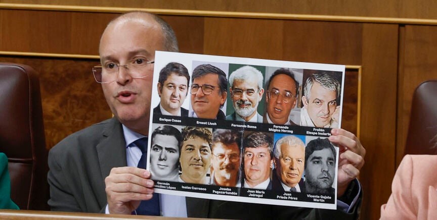 Miguel Tellado mostró este miércoles a la vicepresidenta primera del Gobierno, María Jesús Montero, las fotografías de 12 cargos socialistas asesinados por ETA y le ha preguntado si va a ser capaz de mirar a los ojos a sus familias tras pactar con EH Bildu. Tellado, que se ha referido a la reforma de la Ley Orgánica de 2014 sobre intercambio de información de antecedentes penales, aprobada por unanimidad en el Congreso y que según la Asociación de Víctimas del Terrorismo (AVT) permitirá a 44 etarras salir antes de prisión, ha dicho que su formación ya entiende a qué se refería el coordinador general de EH Bildu, Arnaldo Otegi, cuando habló de cambiar presos por presupuestos.