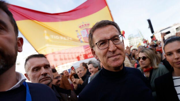 En su intervención, Feijóo ha defendido a una "mayoría de españoles que ya no es silenciosa" y que protestará "hasta que haya elecciones". "España va a tener un presidente que ha comprado su investidura a cambio de la impunidad judicial de sus socios", ha criticado en su discurso.