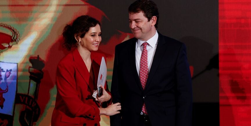 El presidente de Castilla y León ha presentado a su homóloga madrileña en un desayuno en la capital, en el que ella ha valorado el adelanto electoral en la región vecina: "Es tu verdadero examen, el que te hace libre".