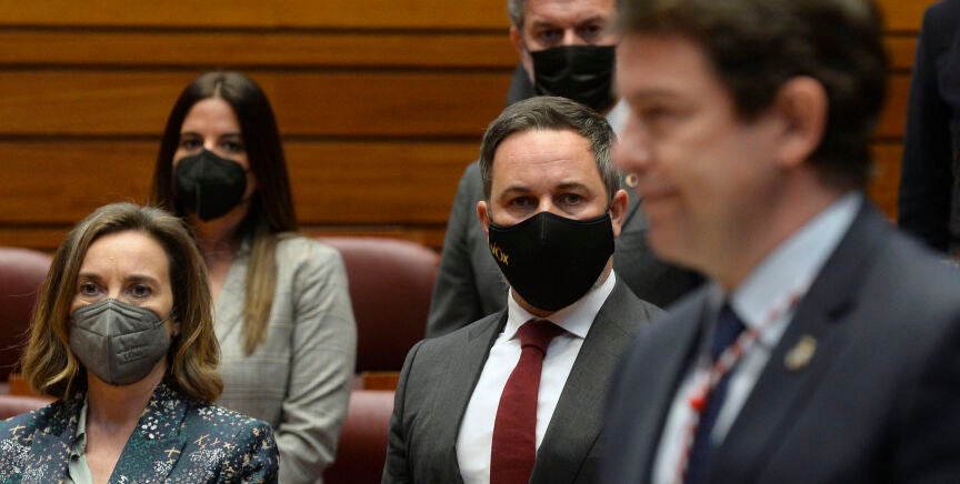 El presidente de Vox, Santiago Abascal, ha asegurado este martes que para su formación hoy "no había un sitio más importante en el que estar" que en Castilla y León, aunque ha evitado juzgar la ausencia de su homólogo del PP.
