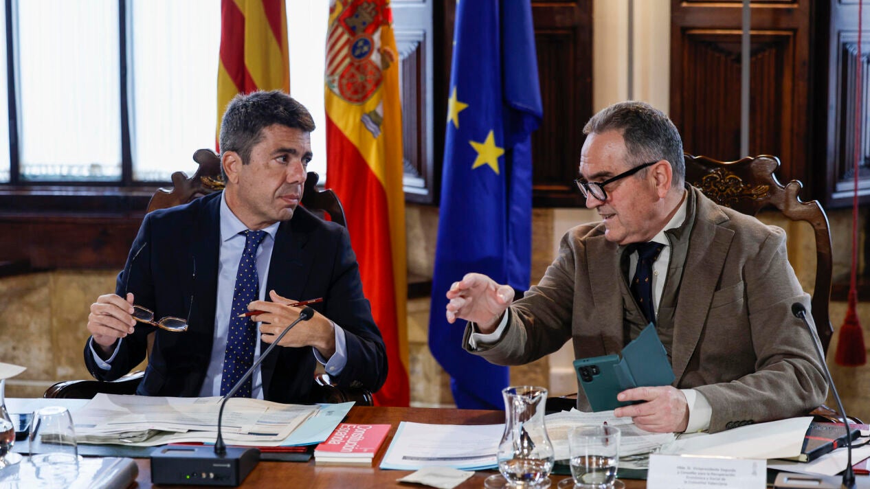 El president de la Generalitat Valenciana, Carlos Mazón, y el vicepresidente y conseller de la Recuperación de la Generalitat Valenciana, Gan Pampols, han protagonizado su primer acto en conjunto cuatro meses después de que este último asumiera su cargo de vicepresidente.