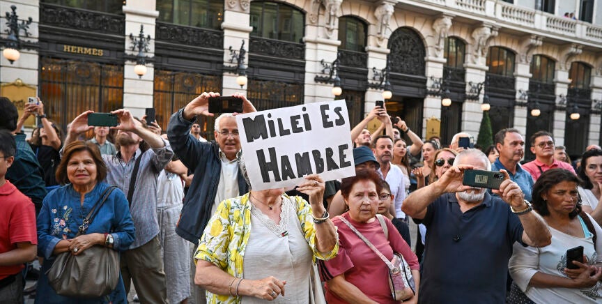 "Milei es hambre": argentinos y españoles protestan en contra de la presencia del mandatario en Madrid