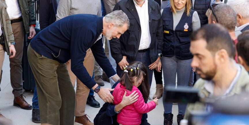 El momento de los reyes con una niña en Chiva durante su regreso a Valencia por la DANA