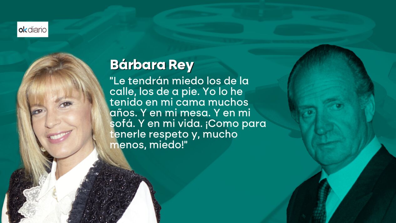 Las conversaciones grabadas de la vedette Bárbara Rey son interminables. Este lunes Okdiario ha vuelto a desvelar un audio de las llamadas entre la actriz y el periodista Santiago Arriazu, quien actuaba como mediador con lo que actualmente es el CNI. En esas conversaciones que tienen lugar en los años 90, ella se jactaba de no tener "miedo" al rey emérito Juan CarlosI, con quien mantuvo una relación sentimental durante años.