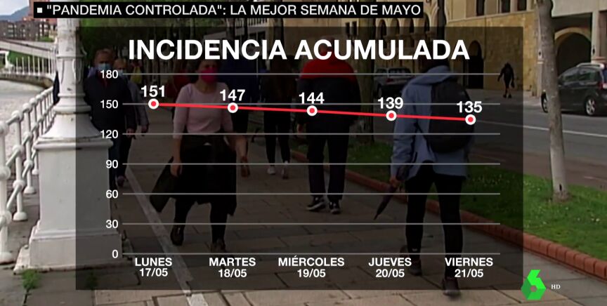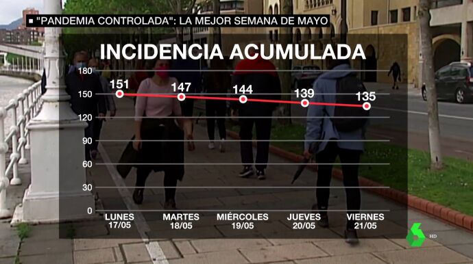 Este medidor marcaba 6,4% en la semana del 3 al 7 de mayo y su tendencia ha sido decreciente: en la semana del 10 al 14 marcaba un 5,% hasta llegar al 4,9% de la semana del 17 al 21 de este mes.