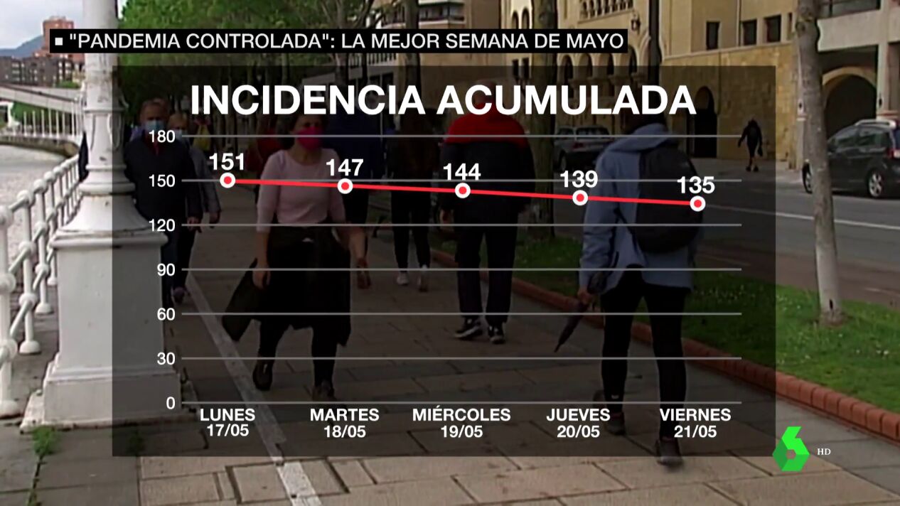 La pandemia de coronavirus en España está controlada. Así se desprende de los últimos indicadores que sitúan la tasa de positividad en el 4,9%, por debajo del 5% que ha fijado la Organización Mundial de la Salud para considerar una epidemia bajo control.