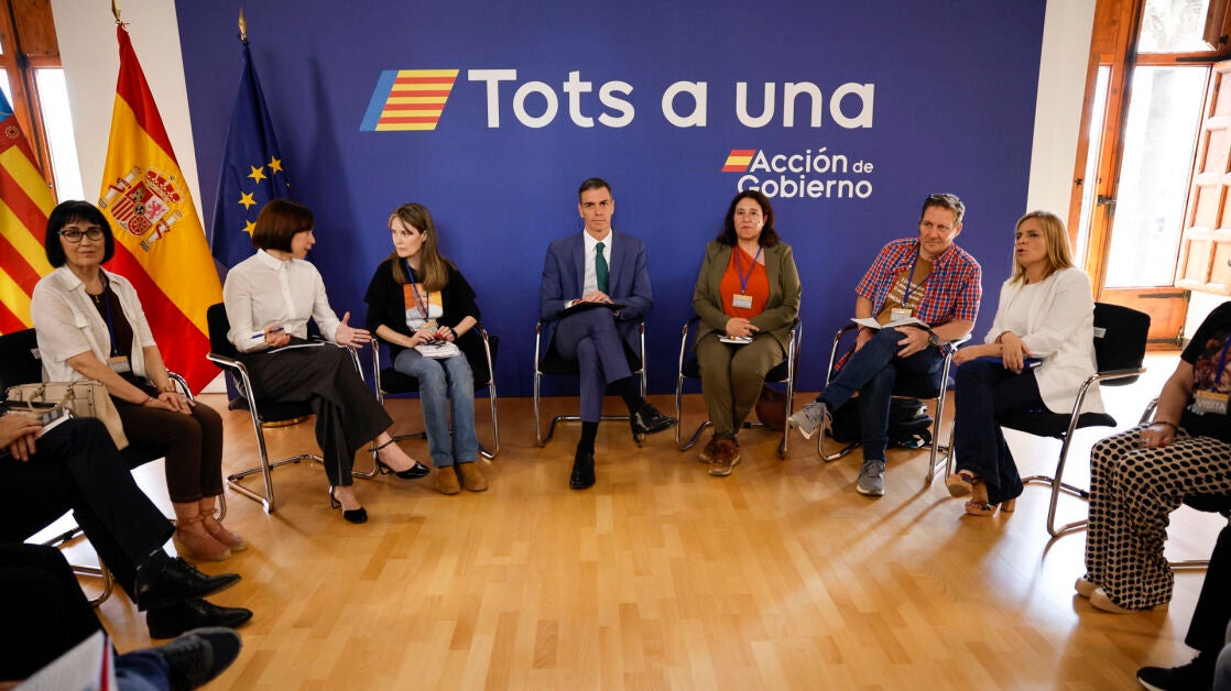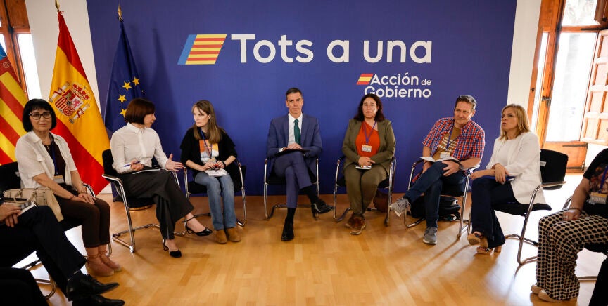 A pocos días de cumplirse el séptimo mes de la tragedia, la reunión se celebra en la sede de la delegación del Gobierno de la capital valenciana. El presidente está acompañado de la ministra de Ciencia, Diana Morant; la delegada en el Gobierno valenciano, Pilar Bernabé; y el secretario de Estado de Política Territorial, Arcadi España.