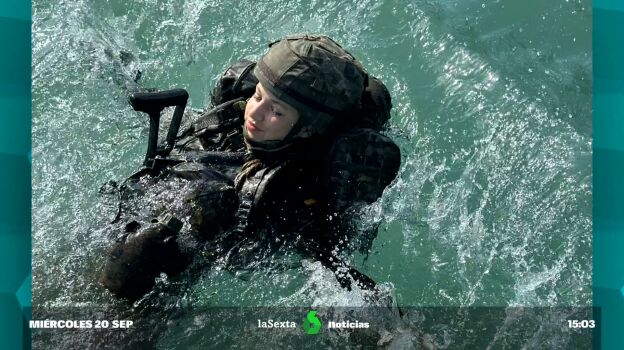 La cadete Borbón Ortiz aparece junto a sus compañeros realizando diversos ejercididos en la Academia General Militar de Zaragoza. El 7 de octubre, jurará bandera junto al resto de alumnos que ingresaron en la academia junto a ella.