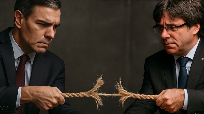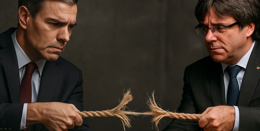 La cuerda está más tensa que nunca. Las idea de Carles Puigdemont de retirar su apoyo al Gobierno de Pedro Sánchez, después de varios amagos, cada vez parece más real, sobre todo tras un encuentro previo a la cita de este lunes por la mañana en Perpiñán (Francia) entre miembros del Gobierno y el núcleo duro del expresident catalán, incluido él mismo.
