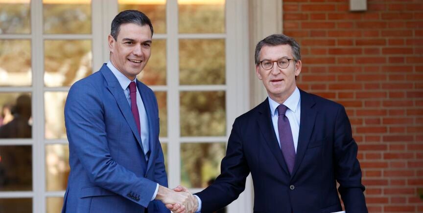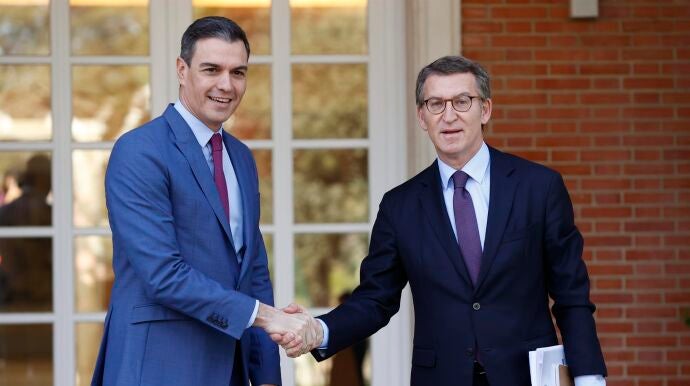 Pedro Sánchez y Alberto Núñez Feijóo se encuentran en la primera reunión con el líder gallego como presidente del Partido Popular.
